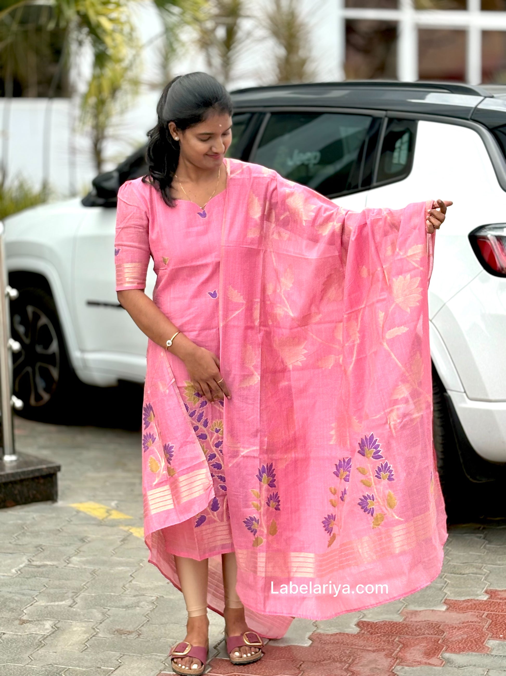 Fabric: Silk blend jacqurad weaved cotton