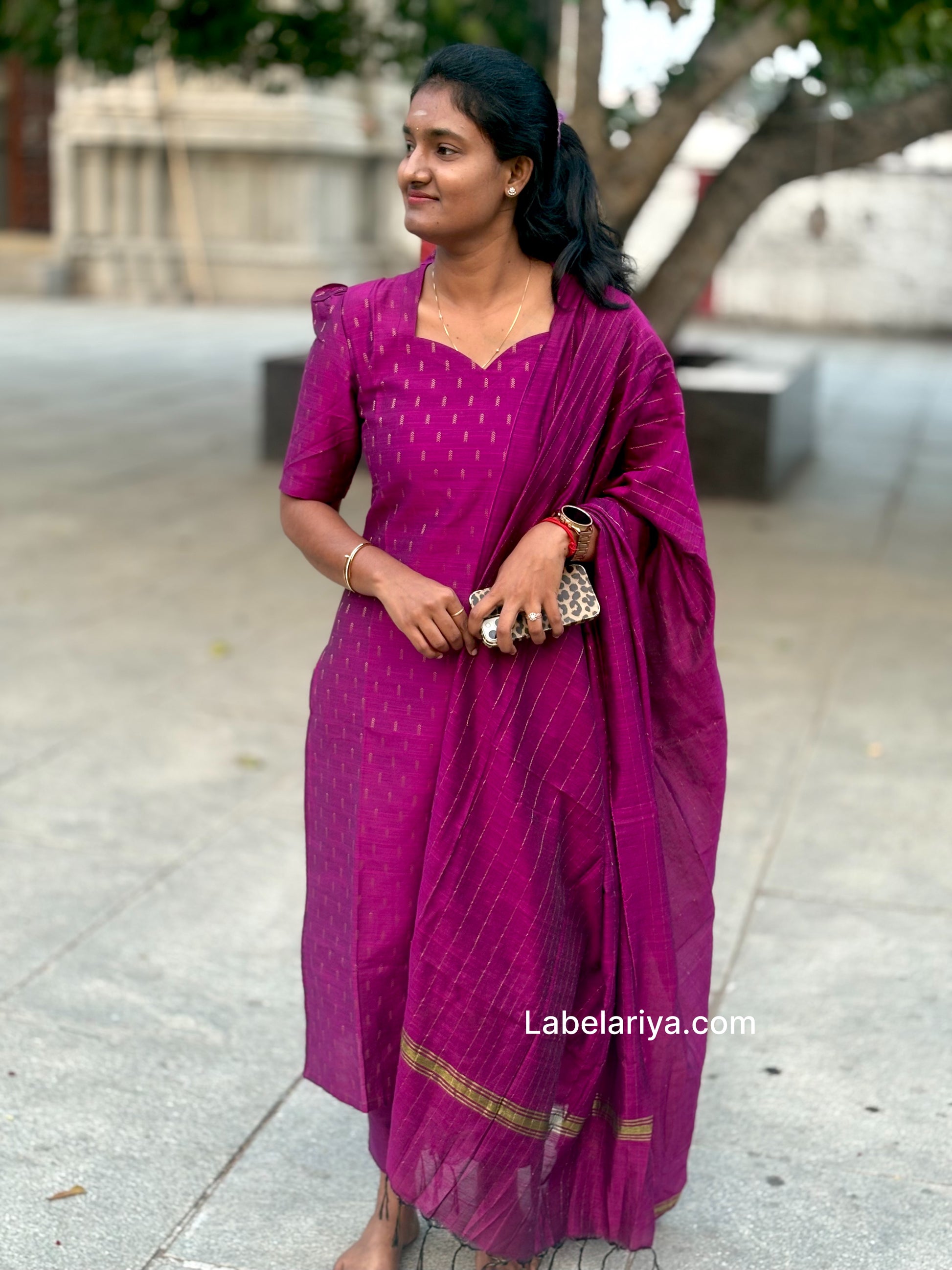 Dupatta is weaved with golden zari lines